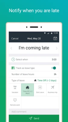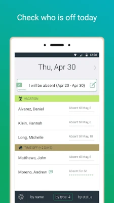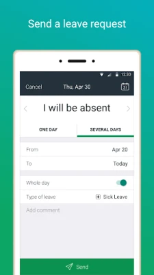 This application provides a mobile interface for actiPLANS absence management software. With the mobile app you can send leave requests, report when you are late for work or leave early and check who is out of office today on-the-go.