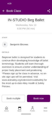 The Ailey Extension app makes it easy for you to browse upcoming classes, learn more about our instructors, purchase class packages, sign up on the go, and manage your account, all from the convenience of your phone.