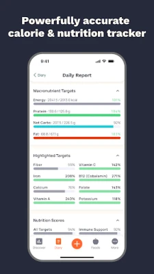 - Comprehensive Nutrition Tracking: Count calories, macros, and 84 micronutrients