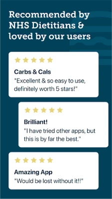 - Track carbs, calories, protein, fat, saturated fat, fibre, alcohol & 5-a-day.