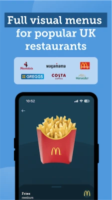 - Full menus and photos for over 40 popular UK restaurants & cafes including Costa, Greggs, McDonald's, & Wagamama!