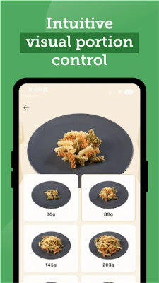 The visual food tracker makes managing your diabetes easy! Simply choose from up to 6 portion sizes and compare the photo to the food on your plate for an easy, reliable carb count.