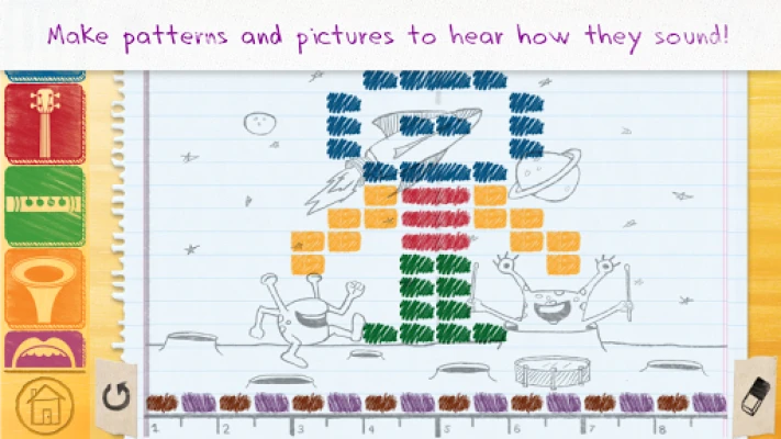 - Connect visual patterns with sounds using our colorful, intuitive interface.