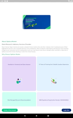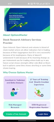 Optionsmaster Research Advisory Services is a SEBI registered analyst firm (Registration Number: INH000008622), focusing on delivering specialized research analyst services with specially in options segment of the securities markets. Through our dedicated mobile application, clients have convenient access to expert recommendations and valuable insights. Our SEBI registration ensures compliance with regulatory standards, offering clients confidence in the quality and reliability of our advisory services.