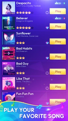 Let's play Rhythm Tiles! Featuring a vast selection of songs across various genres, from classic rhythms to pop beats and EDM vibes, this game ensures you'll never run out of tunes to play on its captivating rhythm tiles.