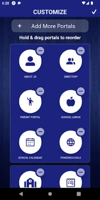Your Richardson Park app is fully customizable by you: Rearrange your portals to easily access whichever features you use most. If you want to check school events frequently, you can put that portal front and center. If you never check the directory, you can turn that portal off.