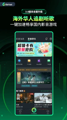 Sixfast是一款为身在海外的华人、留学生、海外出差工作学习等用户打造的一款加速器。稳定加速各大影视、国服游戏、音乐、体育赛事直播、商务办公、学习等应用和平台。一键加速,享受极速网络效果。