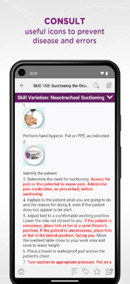 This app contains hundreds of illustrations and photos to help demonstrate key techniques for each skill. Rationales accompany each nursing action to promote a deeper understanding of the principles supporting nursing care.
